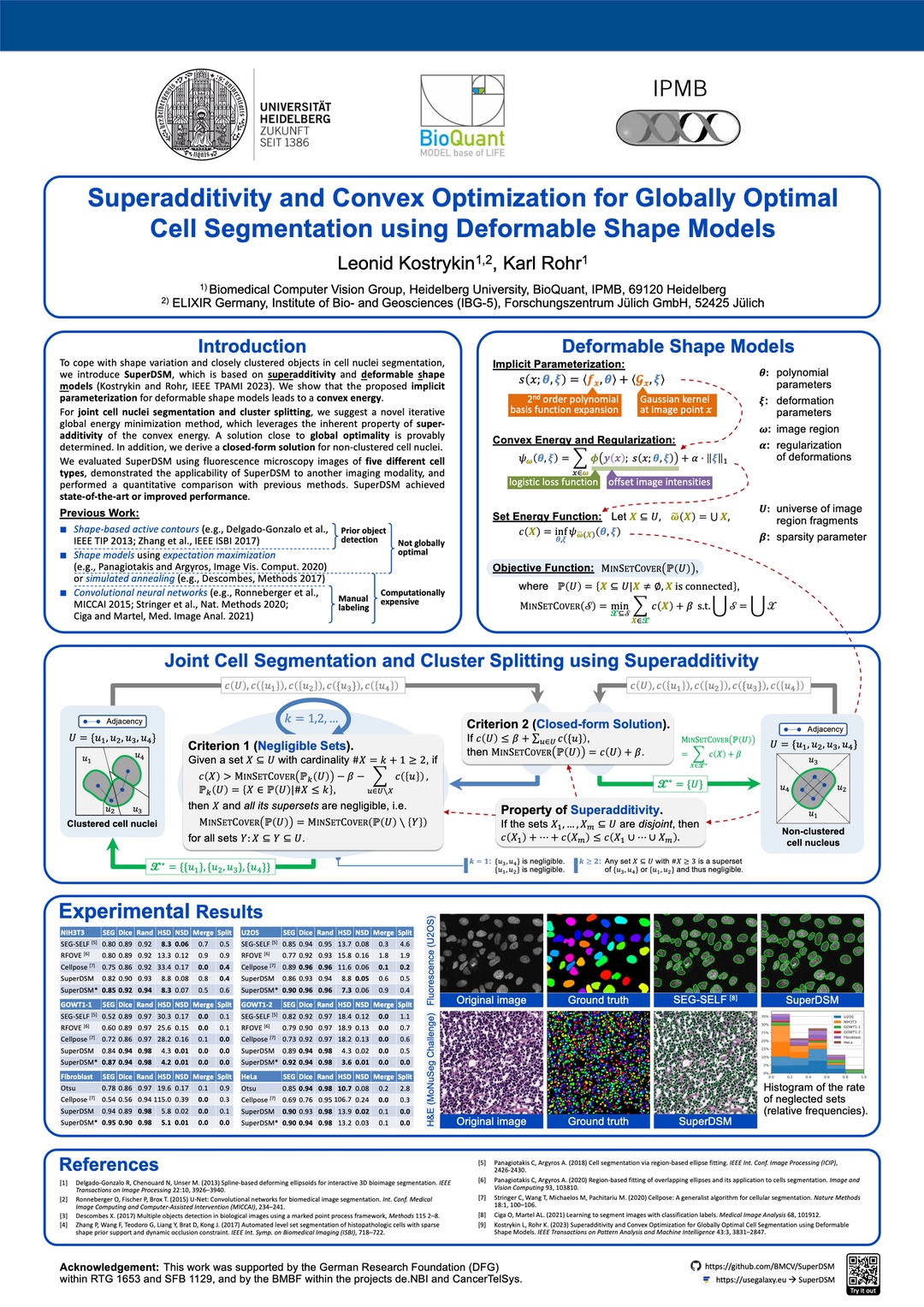 - Poster. DAGM German Conference on Pattern Recognition: Superadditivity and Convex Optimization for Globally Optimal Cell Segmentation using Deformable Shape Models. Heidelberg, Germany, Sep 2023.